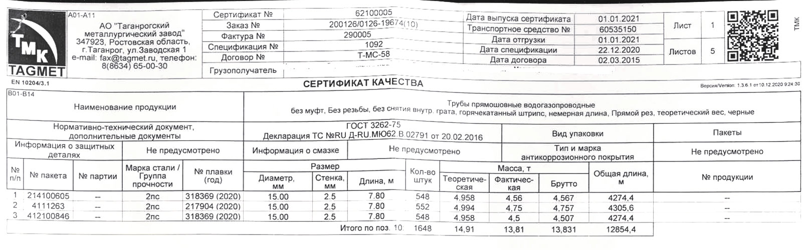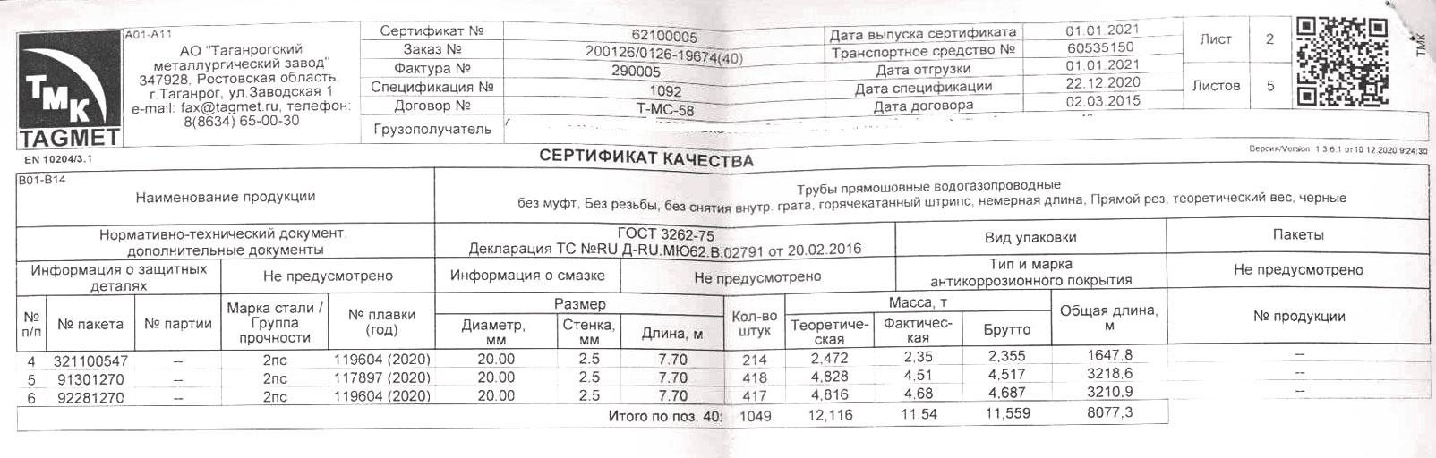 Продукция регламентируется ГОСТом 8734-75. Сортамент стальных труб круглого сечения включает изделия с диаметром от 5 до 250 мм и толщиной стенок от 0,3 до 24 мм.