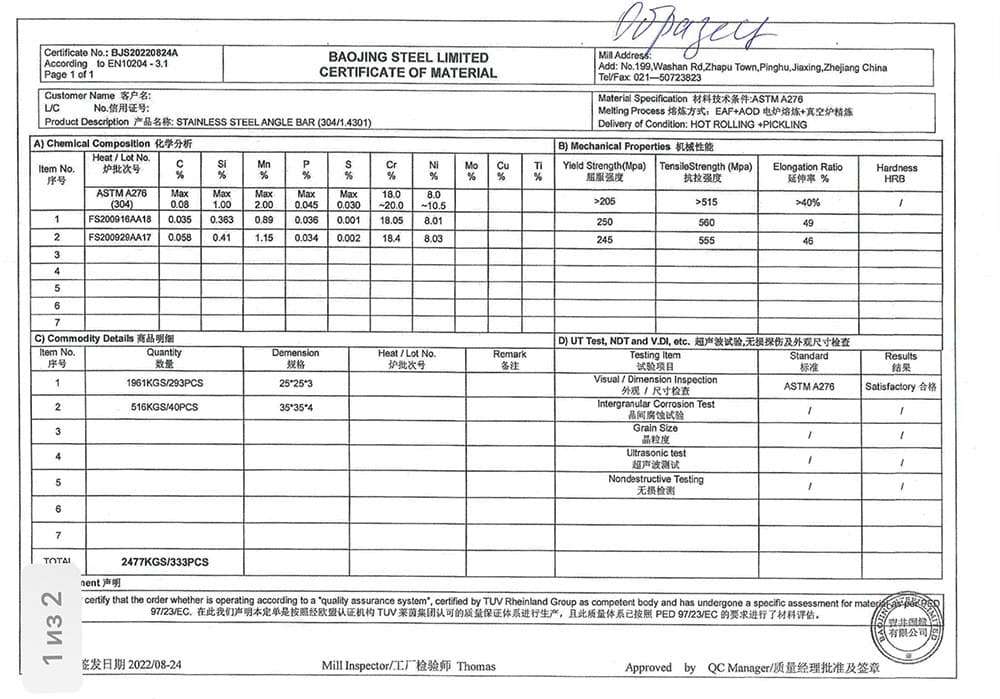 Уголки стальные горячекатаные равнополочные по ГОСТ 8509-93. Уголки стальные горячекатаные неравнополочные ГОСТ 8510-86. Уголок AISI 304 изготавливается методом горячего или холодного проката из высоколегированной жаропрочной и коррозионностойкой марки стали по ГОСТ 5632-2014.