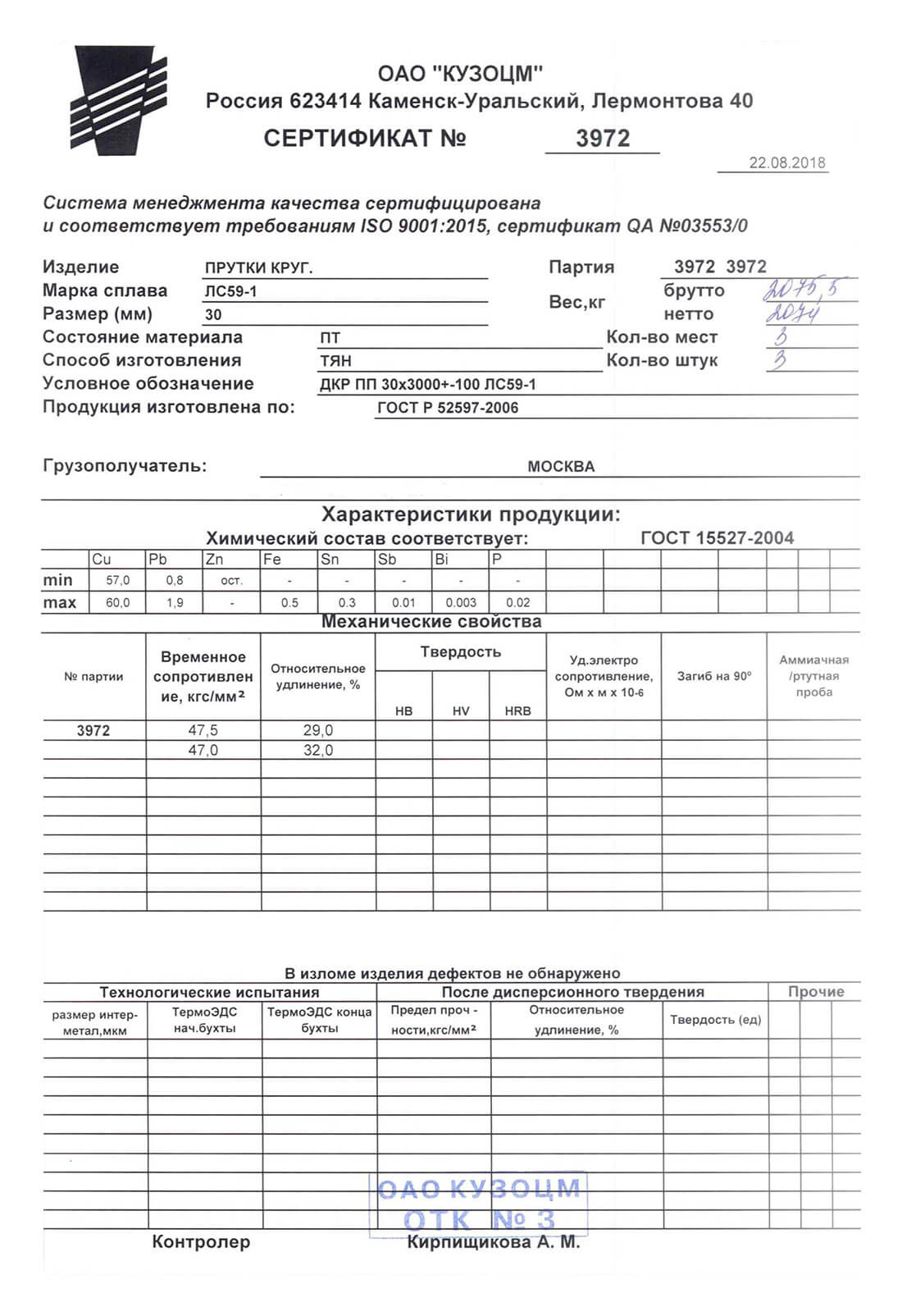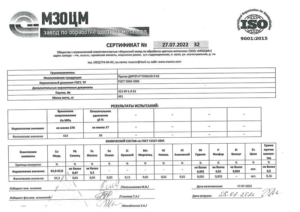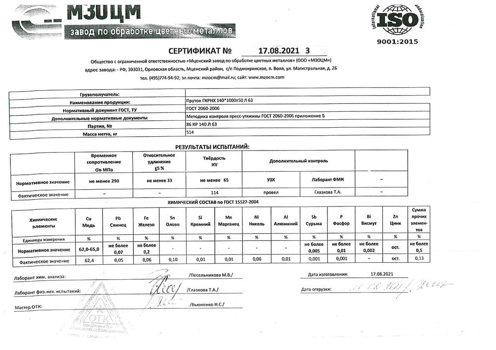ГОСТы на латунные прутки